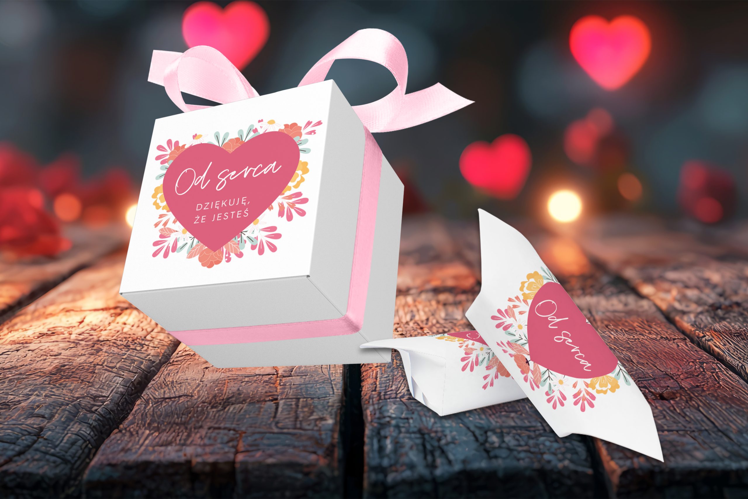 Stawiamy na jakość premium, dlatego pudełeczka drukujemy na szlachetnym, sztywnym kartonie o jedwabistym wykończeniu. Głębokie, nasycone barwy nadruku w połączeniu z dopasowaną satynową wstążką tworzą upominek z wyższej półki, który jest gotowy do wręczenia natychmiast – bez stresu i dodatkowego pakowania.