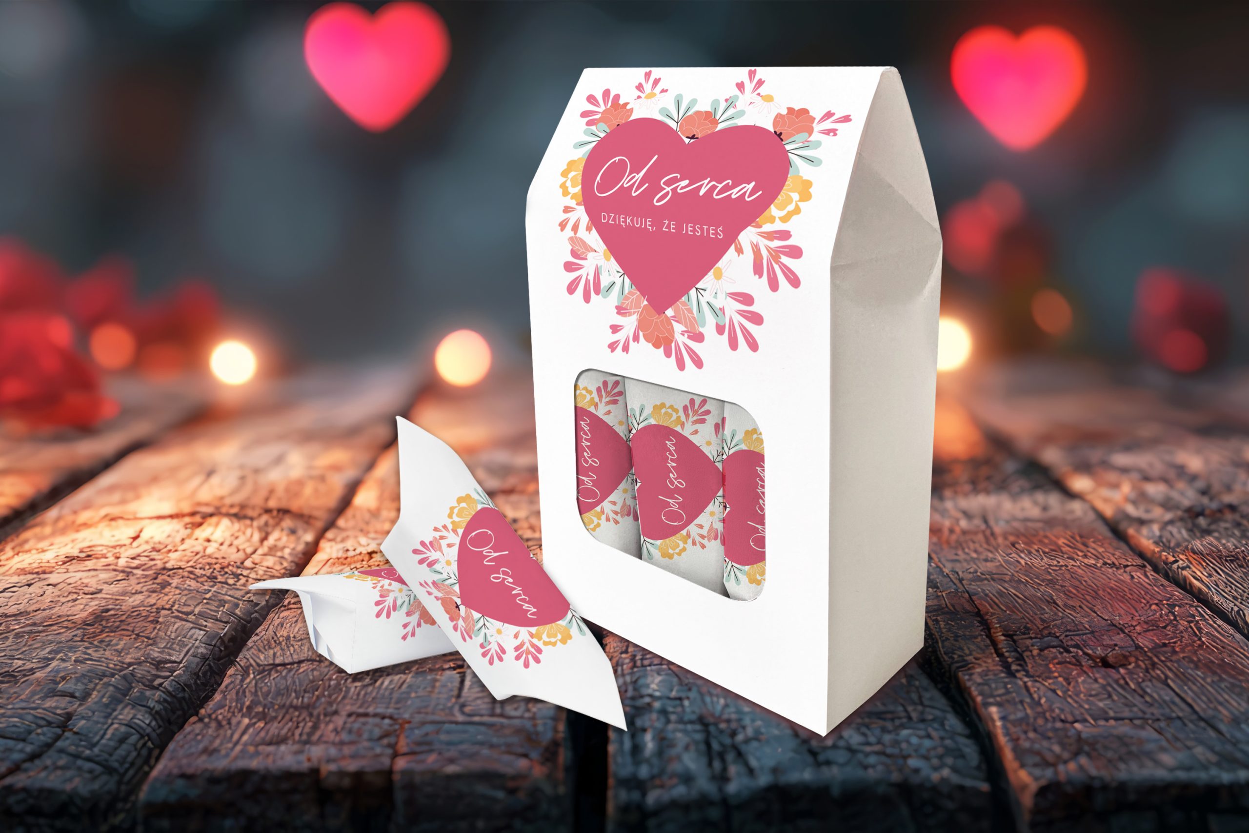 Pudełeczko z estetyczną, miłosną grafiką nadaje upominkowi wyjątkowego charakteru. To gotowy do wręczenia prezent – elegancki, czuły i niezwykle smaczny. Sprawdzi się doskonale jako samodzielny gest lub romantyczny dodatek do wspólnej randki.