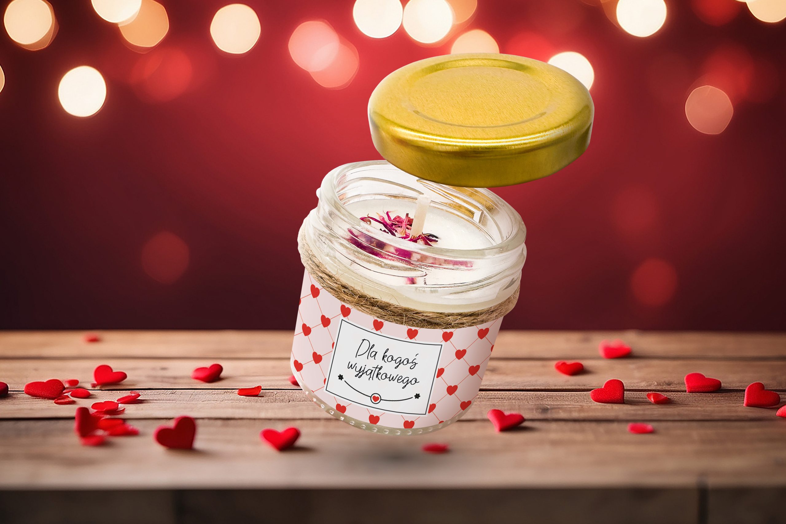 Świeca - Prezent na Walentynki - Wzór - Serduszka