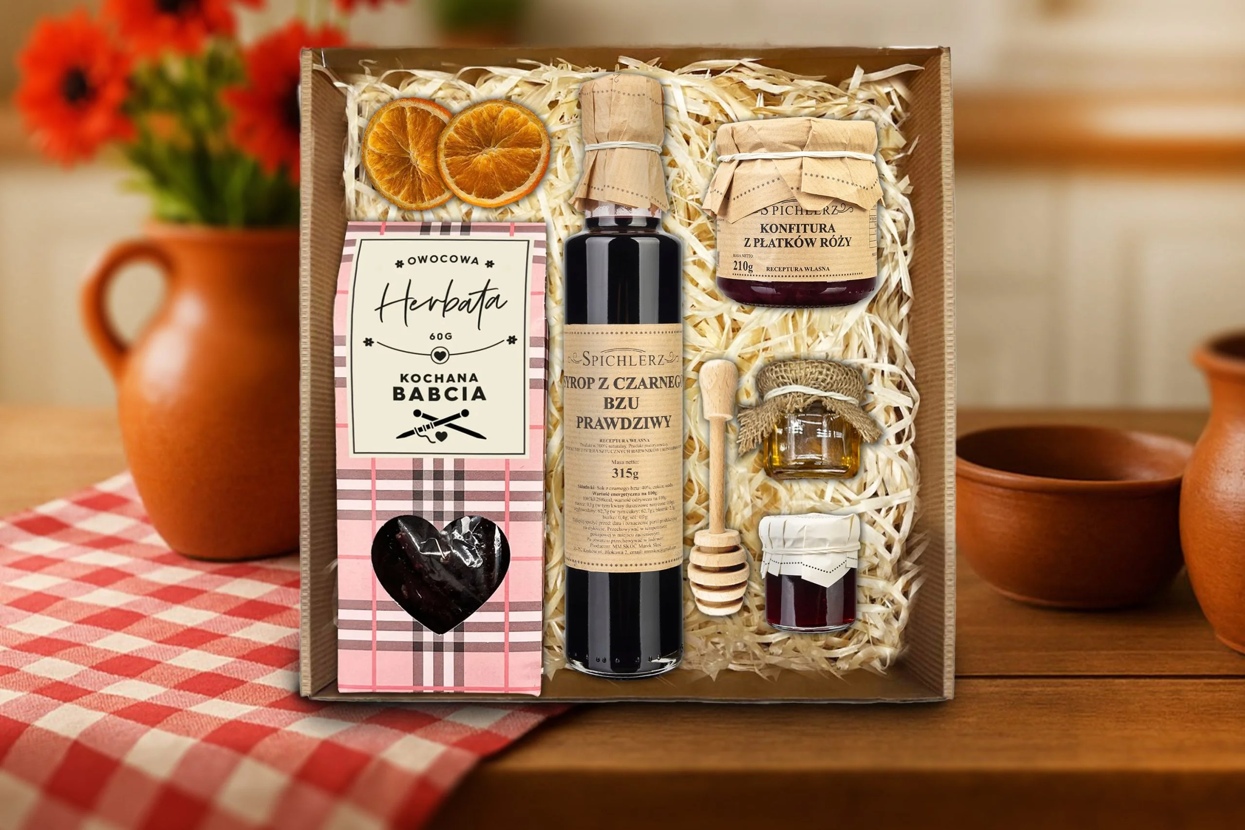 Postaw na elegancki zestaw upominkowy, który łączy naturalne smaki i domowe ciepło. To starannie dobrana kompozycja, stworzona z myślą o podziękowaniu ukochanej Babci za jego obecność i miłość. Ten słodki upominek wzruszy każdą obdarowaną Babcię i umili jej zimowe wieczory.