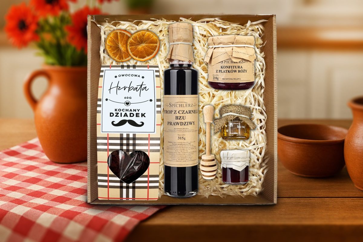 Postaw na elegancki zestaw upominkowy, który łączy naturalne smaki i domowe ciepło. To starannie dobrana kompozycja, stworzona z myślą o podziękowaniu ukochanemu dziadkowi za jego obecność i miłość. Ten słodki upominek wzruszy każdego obdarowanego i umili mu zimowe wieczory.