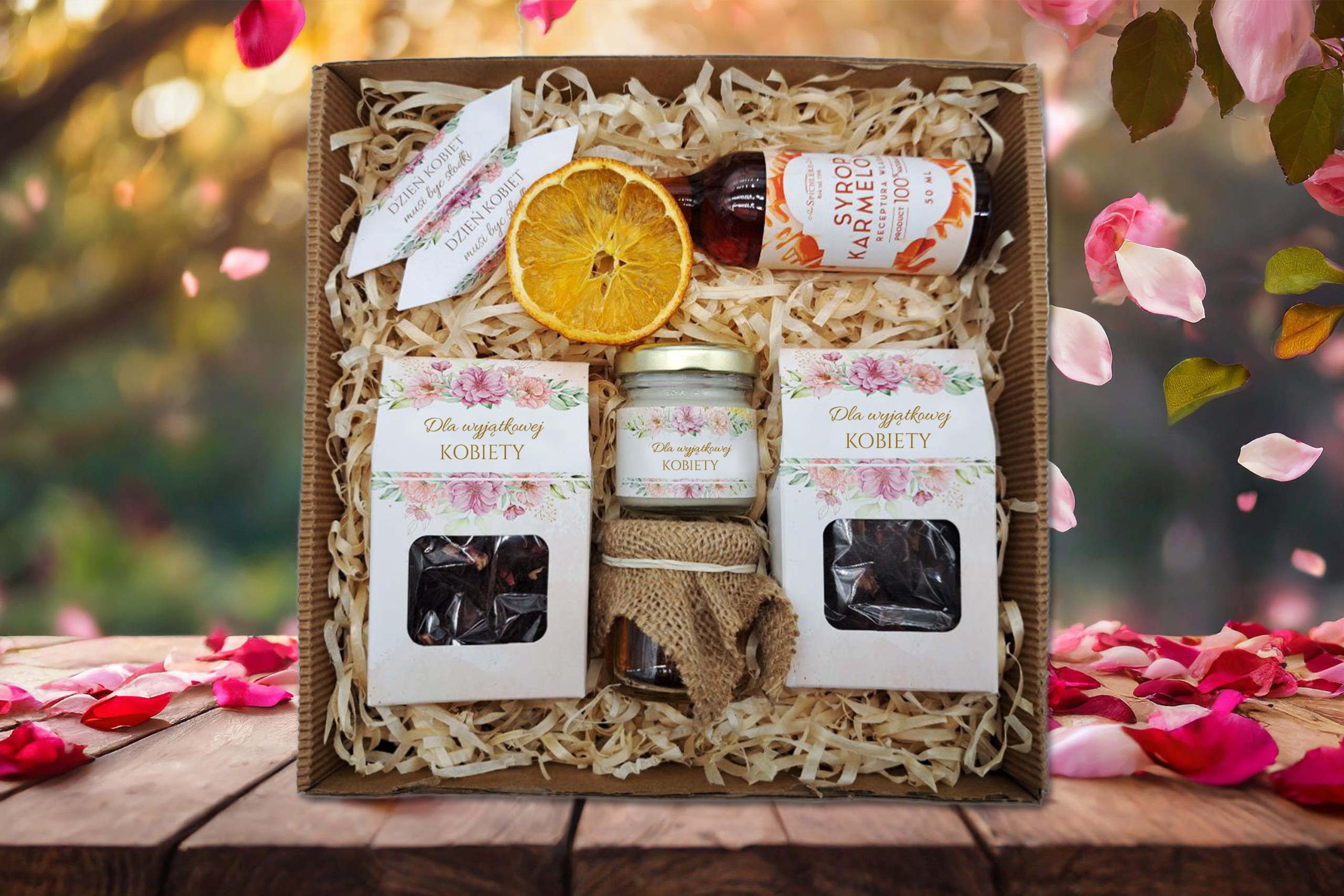 Nasz zestaw to idealne połączenie słodkich rzemieślniczych wyrobów i nastrojowych dodatków, które umilą chwile relaksu. Wszystkie produkty spoczywają na naturalnej wełnie drzewnej, co nadaje całości estetyczny i elegancki wygląd.