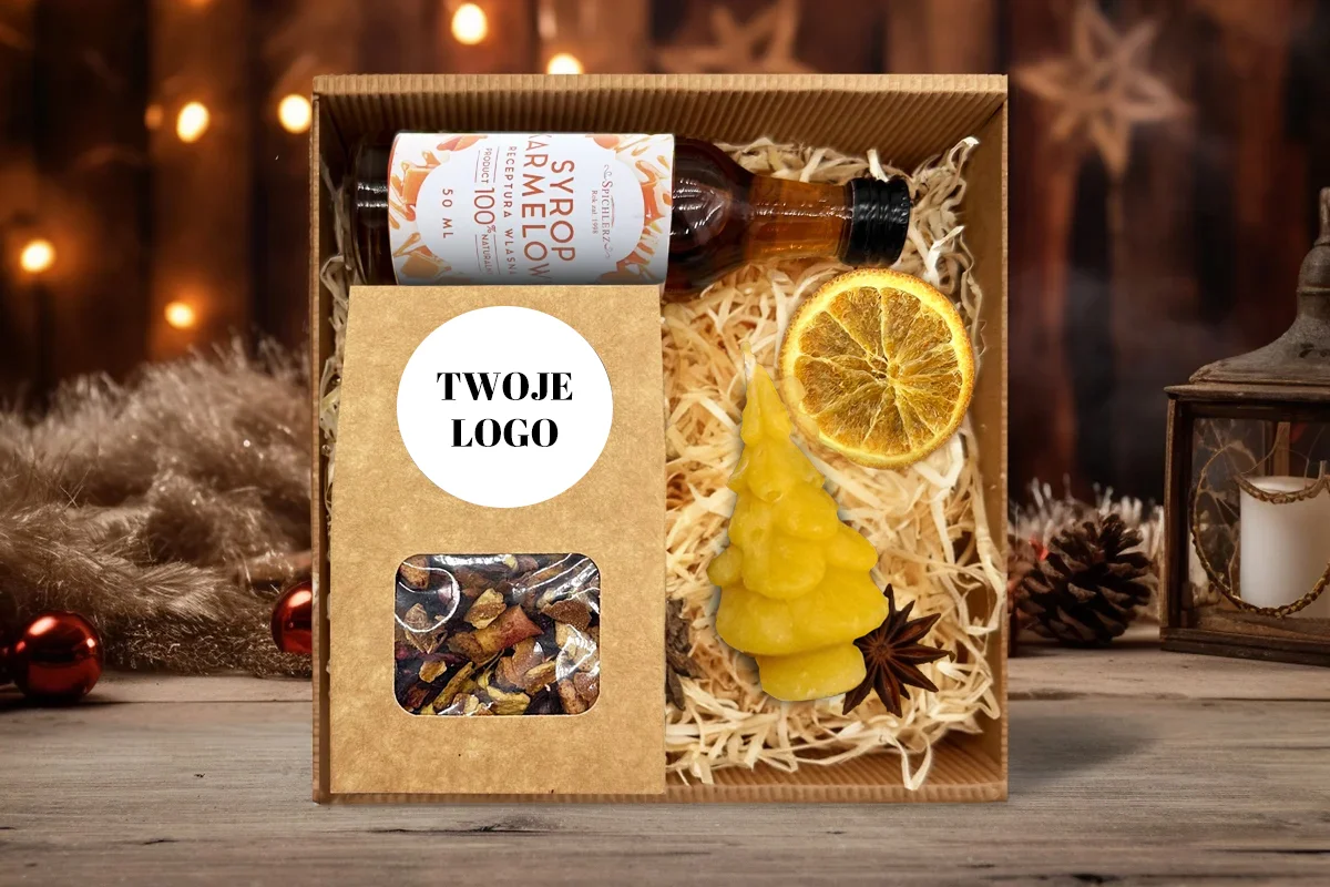 Chcesz coś zmienić? Dodać inny produkt? Napisz do nas i wspólnie stworzymy coś dla Ciebie. Po zakupie prosimy o przesłanie loga, pomysłu na projekt oraz wytycznych do przygotowania projektu przez grafików na adres [email protected]. Zestaw Świąteczny „Herbata i Słodkości” to idealne połączenie, które wprowadzi atmosferę świątecznego relaksu i przyjemności. W środku znajdziesz aromatyczną herbatę, której ciepły zapach doskonale wpisuje się w zimowe wieczory, rozgrzewając zarówno ciało, jak i duszę. Obok niej czekają wyselekcjonowane słodkości – delikatne, ręcznie robione przysmaki, które dodadzą chwilom odpoczynku wyjątkowego smaku. Zestaw ten jest zapakowany w estetyczne opakowanie, gotowe do wręczenia, co czyni go doskonałym prezentem świątecznym zarówno dla klientów, dla partnerów biznesowych, jak i dla pracowników. To elegancki sposób, by podkreślić świąteczną atmosferę i wyrazić wdzięczność w niezobowiązujący, ale wyrafinowany sposób.